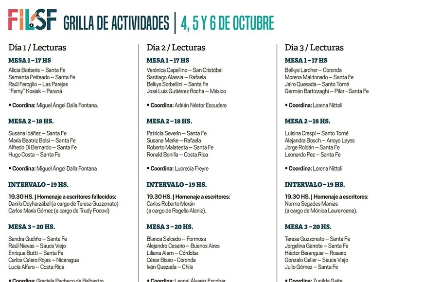 Entre el viernes y el domingo venideros se realizará en la ciudad de Santa Fe, Argentina, el primer Fesival Internacional de Literatura de Santa Fe, con participación de autores tanto de la capital como de la provincia toda, así como de otras latitudes del país y de naciones latinoamericanas.